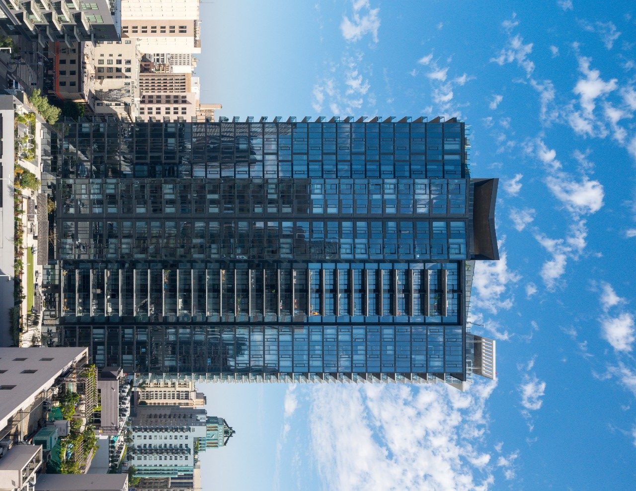 A curtain wall is a non-structural outer covering of a building that can be made of glass. Using low-E coated glass in a curtain wall helps designers to control the appearance (e.g. reflectivity, transparency, color) and performance of the glazing, including thermal insulation and solar protection.