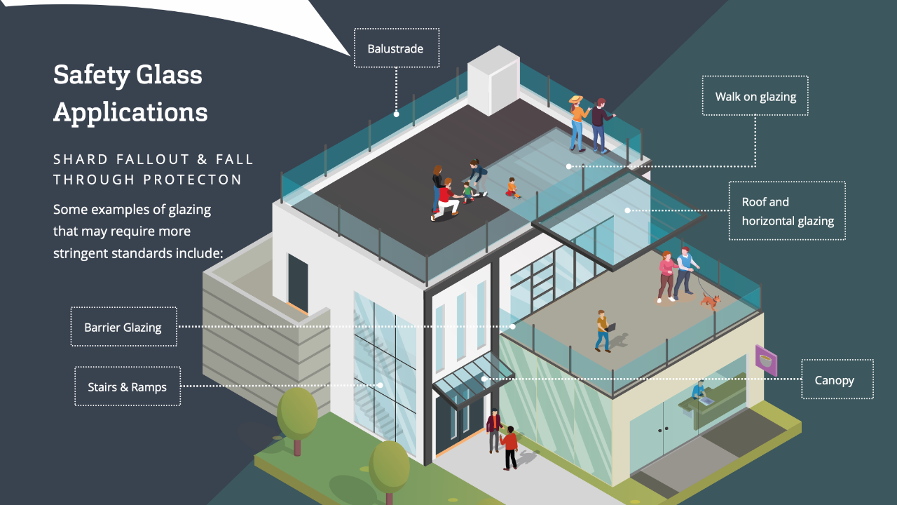 Some examples of glazing that may require more stringent standards include: